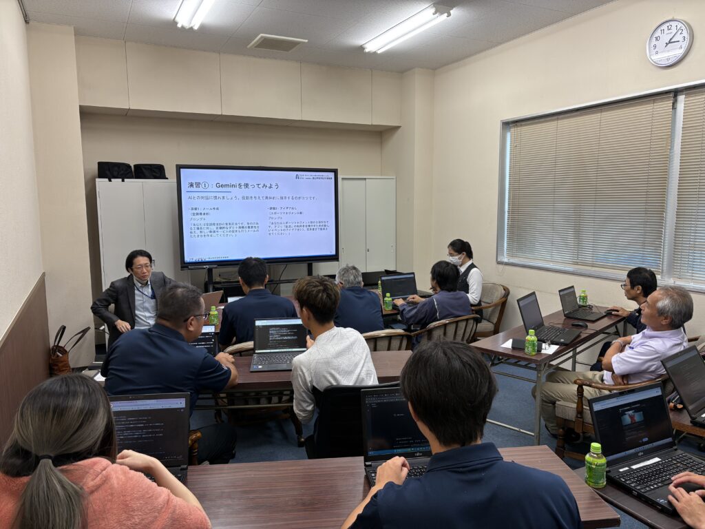本研修会は、急速な技術革新が進む生成AIについて、その基本的な仕組みやビジネスにおける活用方法、そして利用する上での倫理的・法的な留意点などを学ぶことを目的として座学だけでなく、実際にツールを操作するワークショップも交えながら、実践的な知識の習得を図りました。