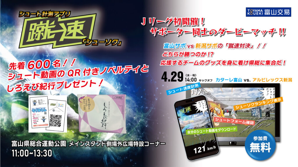 さらに、今回は富山サポvs新潟サポの「蹴速ダービーマッチ」を開催します!